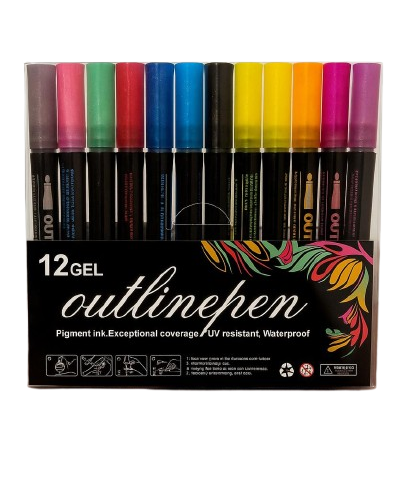 التلوين بالجيل الجديد! مجموعة من 12 قلم جل بألوان زاهية و مختلفة. الأقلام (الماركرز) بتكتب بسلاسة